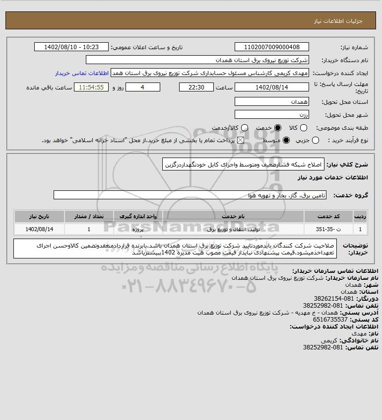 نام سازمان خریدار: شرکت توزیع نیروی برق استان همدان