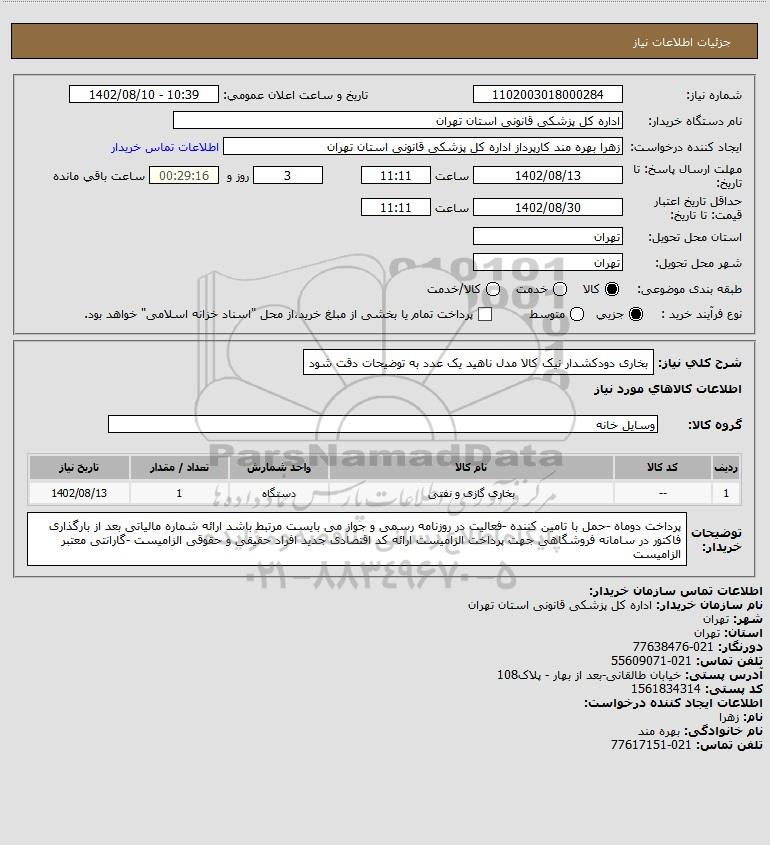 نام دستگاه خریدار:اداره کل پزشکی قانونی استان تهران
