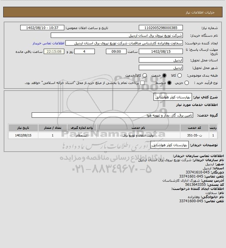 نام دستگاه خریدار:شرکت توزیع نیروی برق استان اردبیل