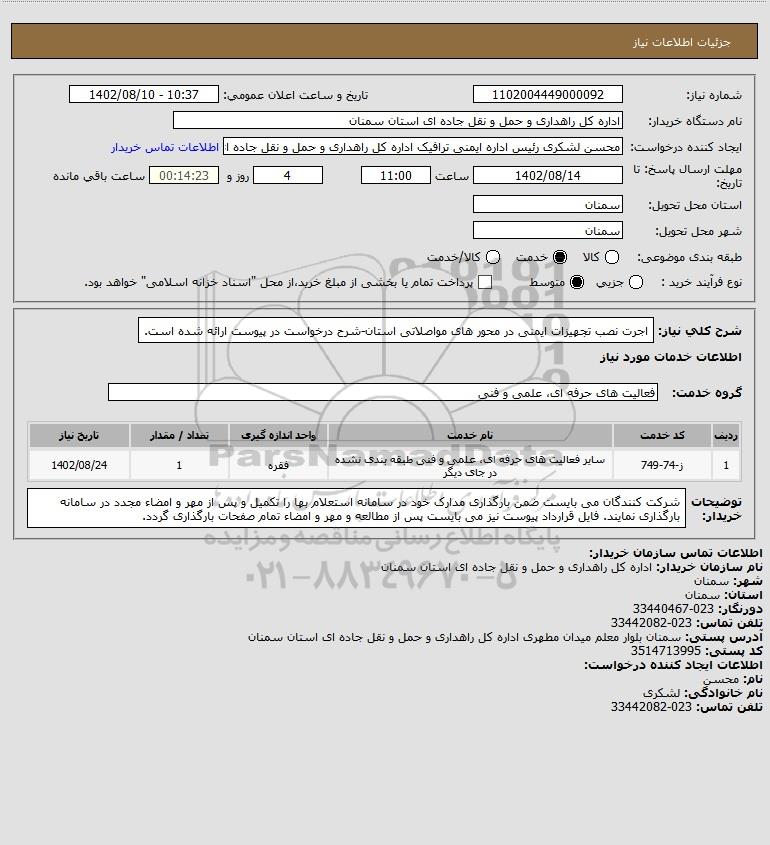 نام دستگاه خریدار:اداره کل راهداری و حمل و نقل جاده ای استان سمنان