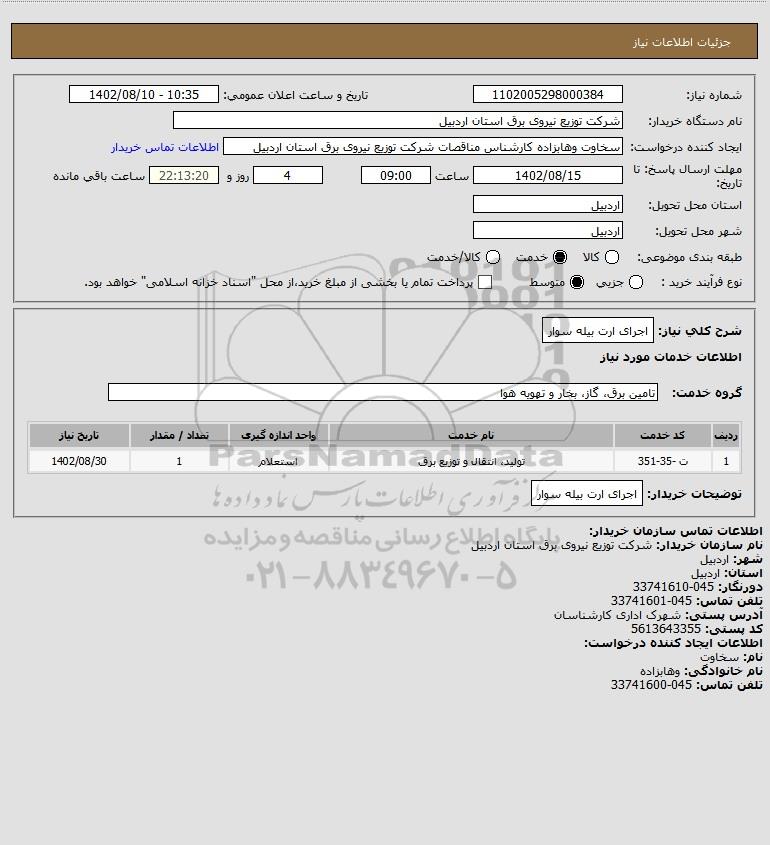 شرح کلی نیاز: اجرای ارت بیله سوار