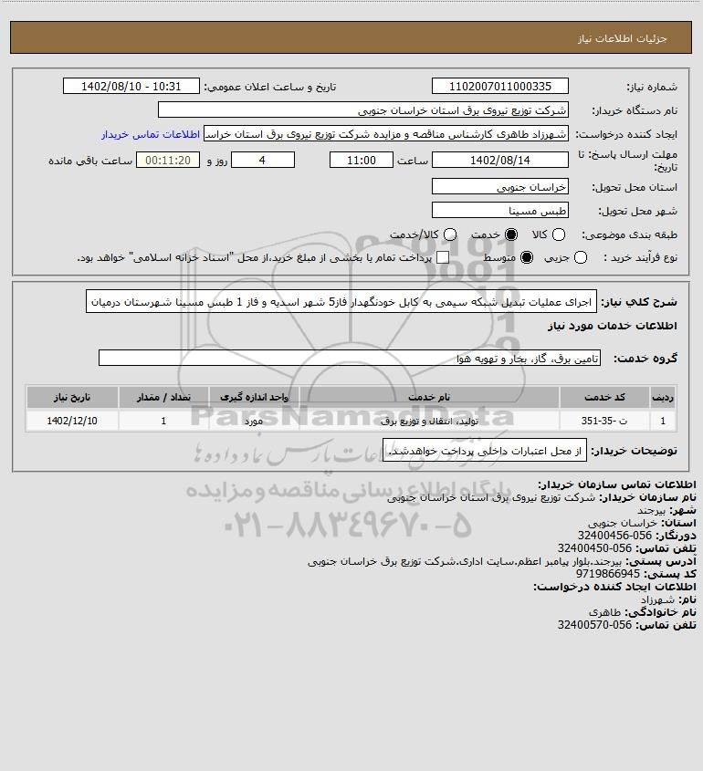 نام دستگاه خریدار:شرکت توزیع نیروی برق استان خراسان جنوبی