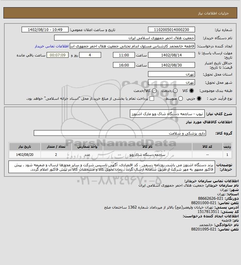 نام دستگاه خریدار:جمعیت هلال احمر جمهوری اسلامی ایران