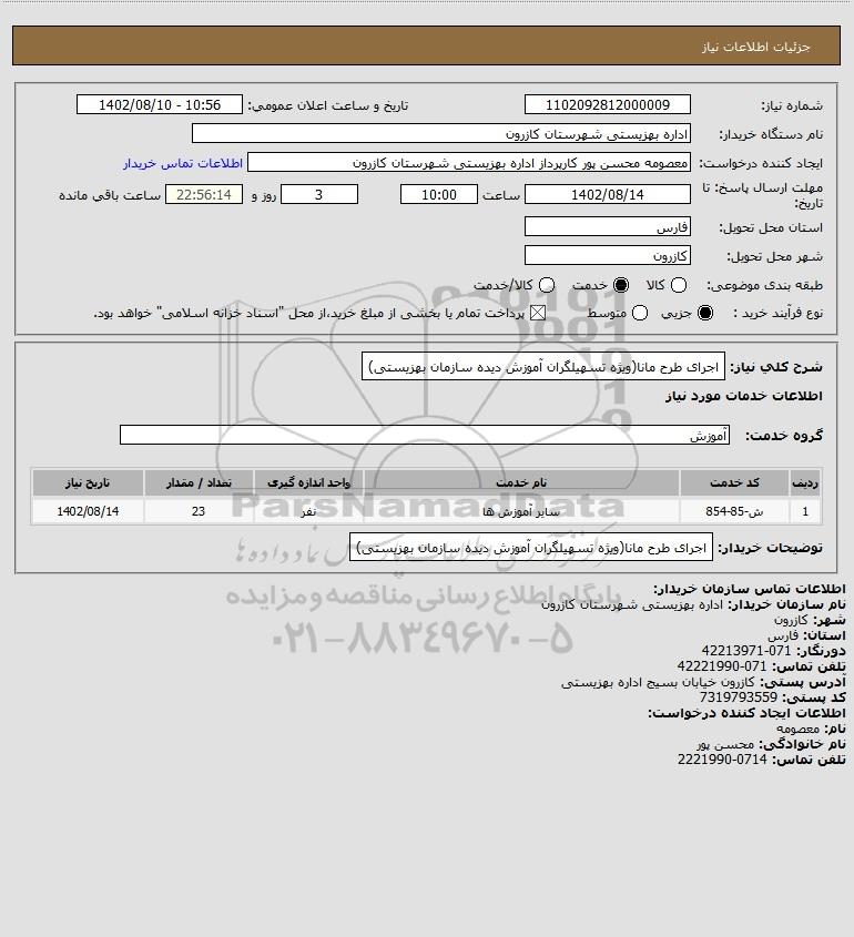 نام دستگاه خریدار:اداره بهزیستی شهرستان کازرون