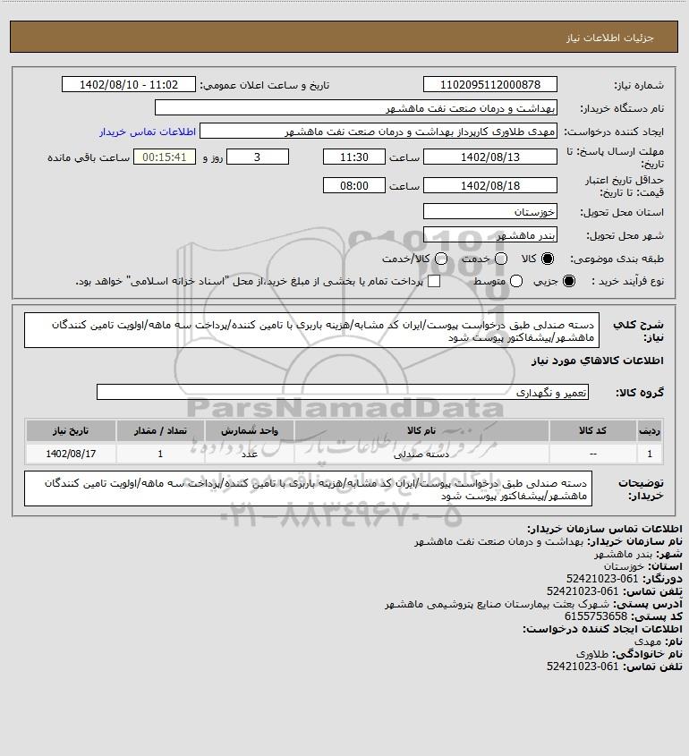 نام دستگاه خریدار:بهداشت و درمان صنعت نفت ماهشهر