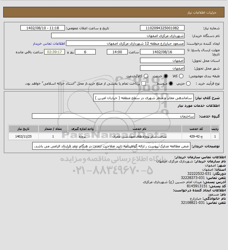 شرح کلی نیاز: ساماندهی معابر و منظر شهری در سطح منطقه ( خیابـان امیــن )