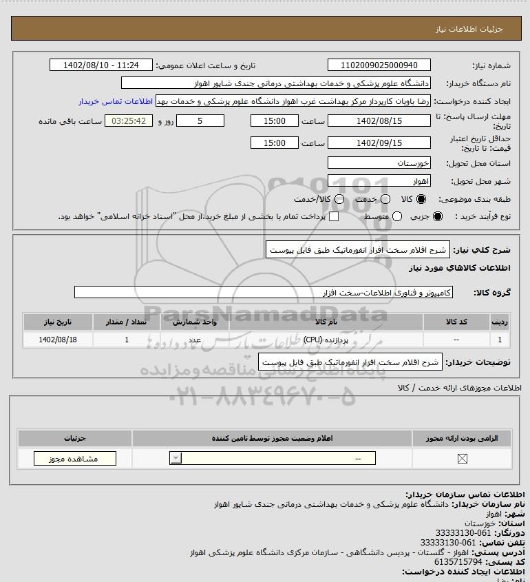 نام دستگاه خریدار:دانشگاه علوم پزشکی و خدمات بهداشتی درمانی جندی شاپور اهواز