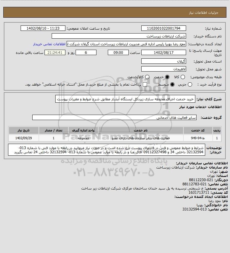 شرح کلی نیاز: خرید خدمت اجرای محوطه سازی زیردکل ایستگاه آبشار مطابق شرح ضوابط و مقررات پیوست