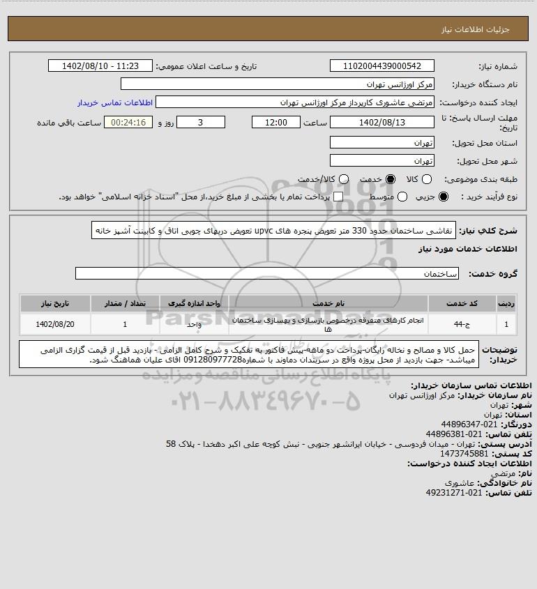 شرح کلی نیاز: نقاشی ساختمان حدود 330 متر تعویض پنجره های upvc تعویض دربهای چوبی اتاق و کابینت آشپز خانه