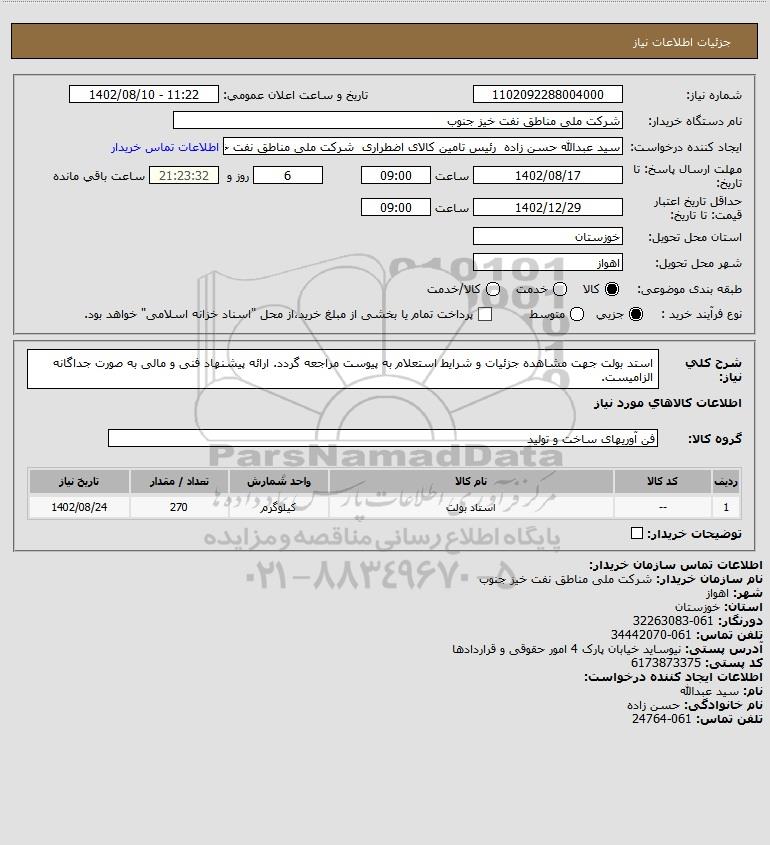 نام دستگاه خریدار:شرکت ملی مناطق نفت خیز جنوب