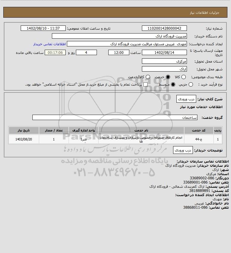 شرح کلی نیاز: درب ورودی