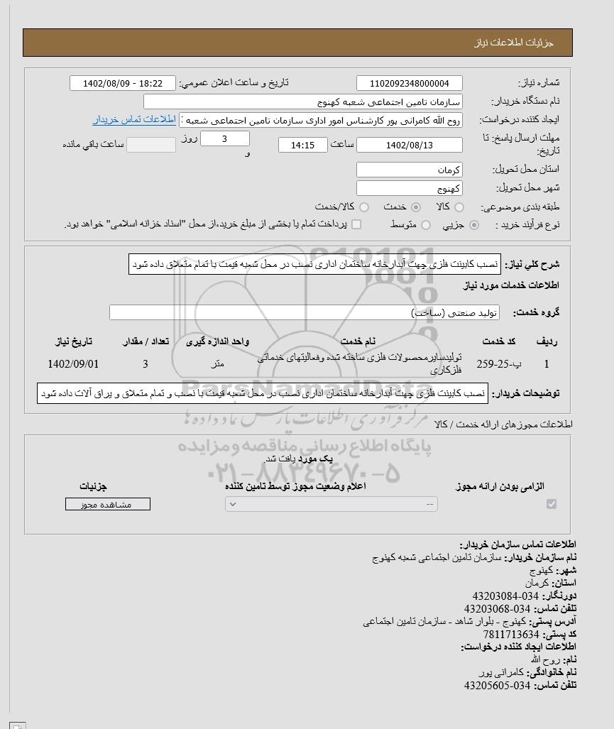 نام دستگاه خریدار:سازمان تامین اجتماعی شعبه کهنوج