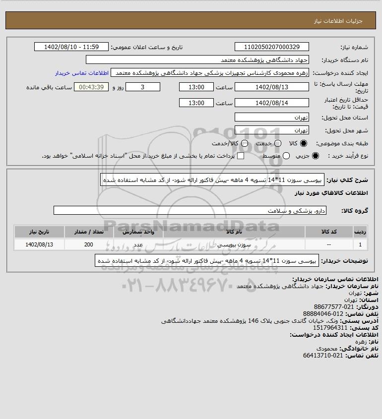 توضیحات خریدار:بیوسی سوزن 11*14 تسویه 4 ماهه -پیش فاکتور ارائه شود- از کد مشابه استفاده شده