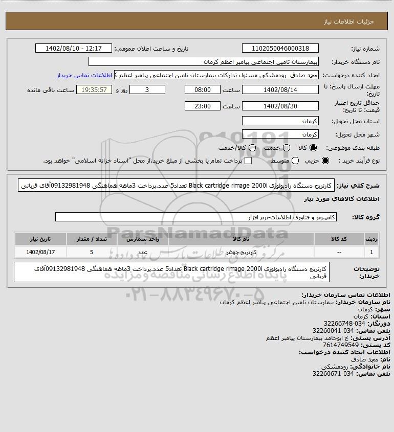نام سازمان خریدار: بیمارستان تامین اجتماعی پیامبر اعظم کرمان