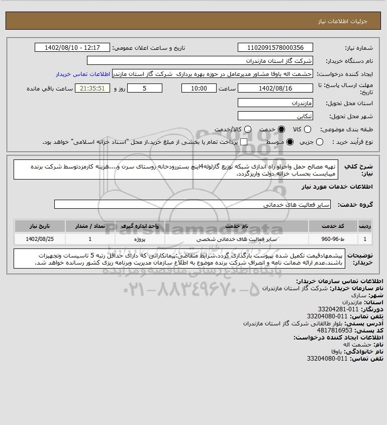 نام دستگاه خریدار:شرکت گاز استان مازندران