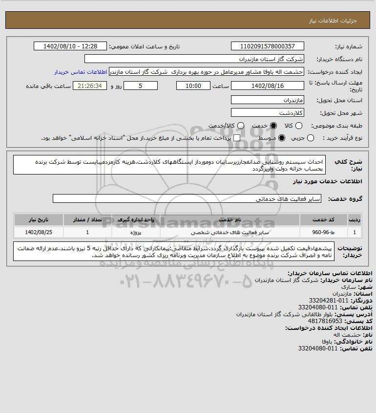 نام دستگاه خریدار:شرکت گاز استان مازندران
