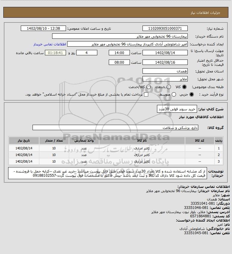 شرح کلی نیاز: خرید سوند فولی 30عدد