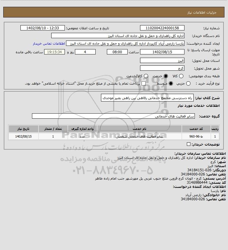 نام دستگاه خریدار:اداره کل راهداری و حمل و نقل جاده ای استان البرز