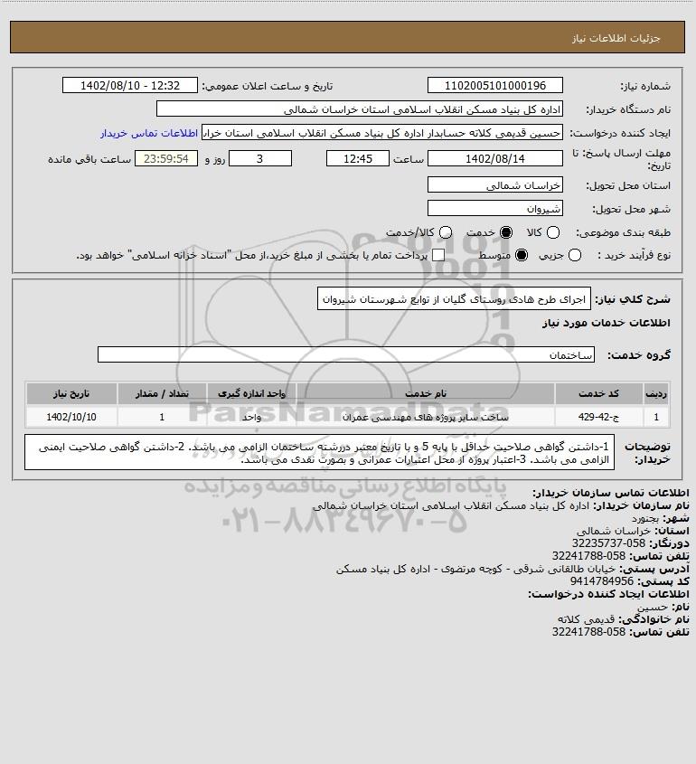 نام سازمان خریدار: اداره کل بنیاد مسکن انقلاب اسلامی استان خراسان شمالی