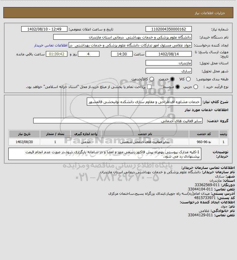 استعلام خدمات مشاوره ای طراحی و مقاوم سازی دانشکده توانبخشی قائمشهر, استعلام خدمات مشاوره ای طراحی و مقاوم سازی دانشکده توانبخشی قائمشهر