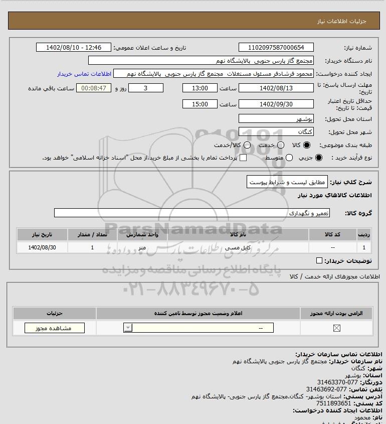 | 1 | -- | کابل مسی | متر | 1 | 1402/08/30 |