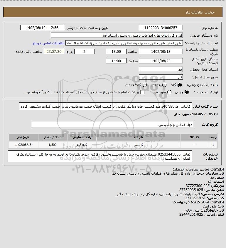 | 1 | -- | کالباس | کیلوگرم | 1,500 | 1402/08/13 |