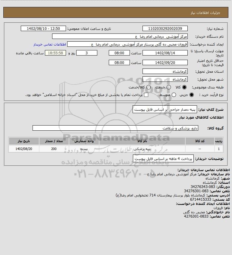 | 1 | -- | پنبه پزشکی | بسته | 200 | 1402/08/20 |
