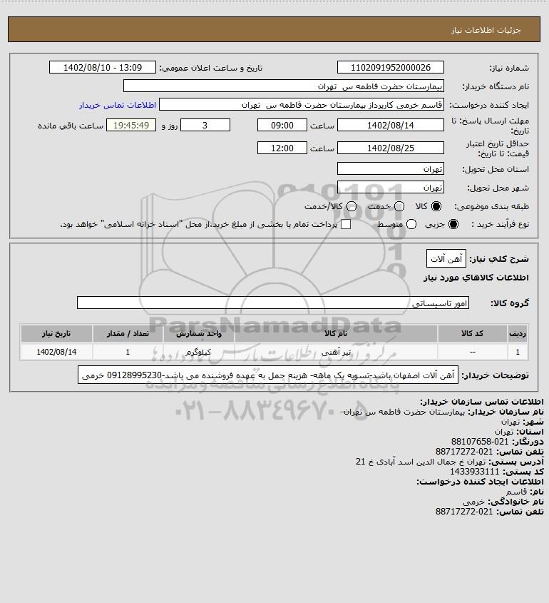 شرح کلی نیاز: آهن آلات