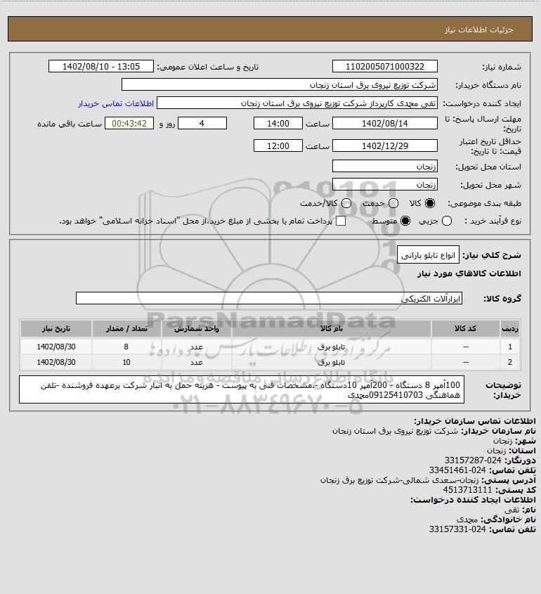 نام دستگاه خریدار:شرکت توزیع نیروی برق استان زنجان
