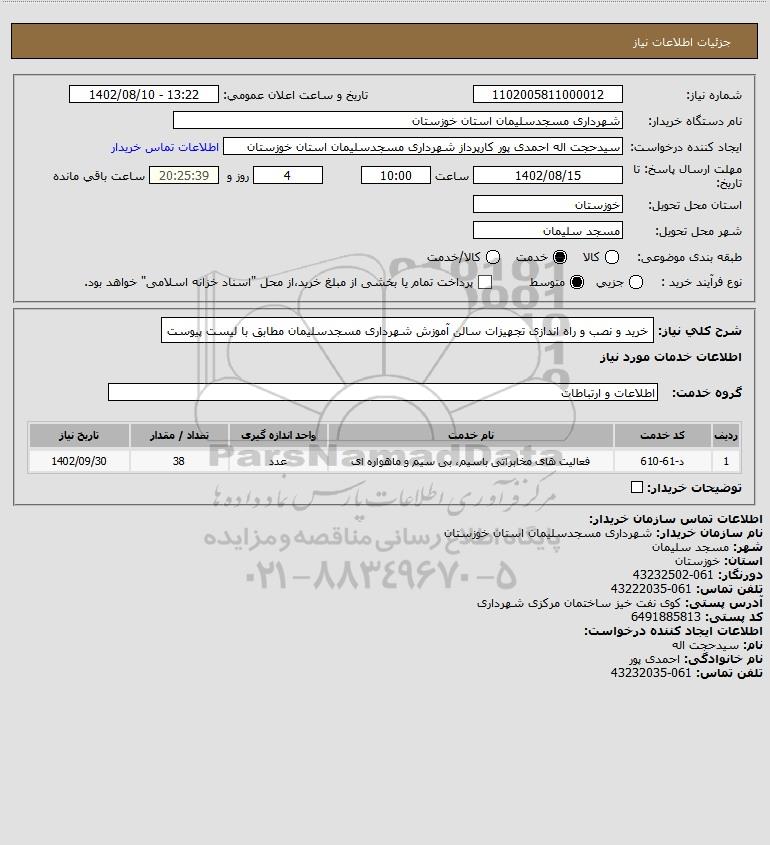 نام دستگاه خریدار:شهرداری مسجدسلیمان استان خوزستان