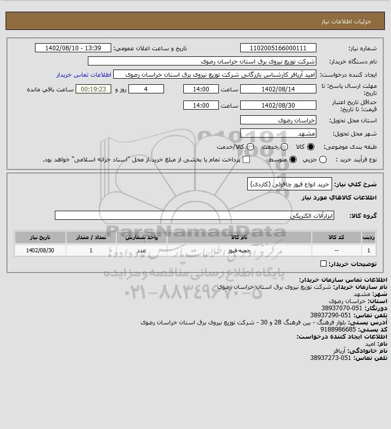 شرح کلی نیاز: خرید انواع فیوز چاقوئی (کاردی)