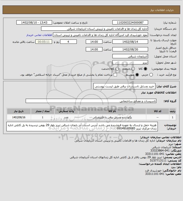 نام دستگاه خریدار:اداره کل زندان ها و اقدامات تامینی و تربیتی استان اذربایجان شرقی