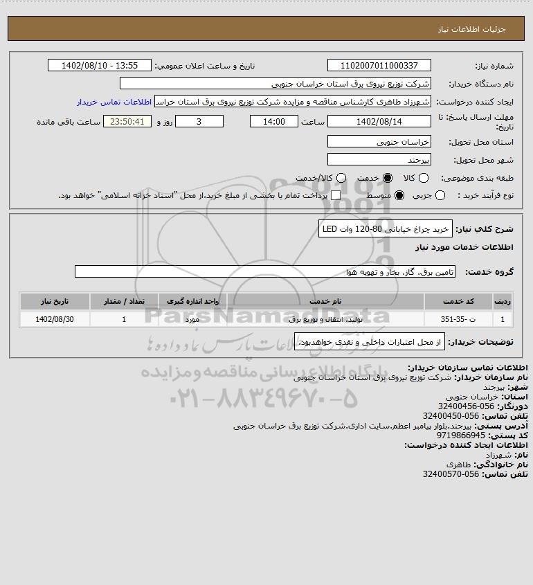 شرح کلی نیاز: خرید چراغ خیابانی 80-120 وات LED