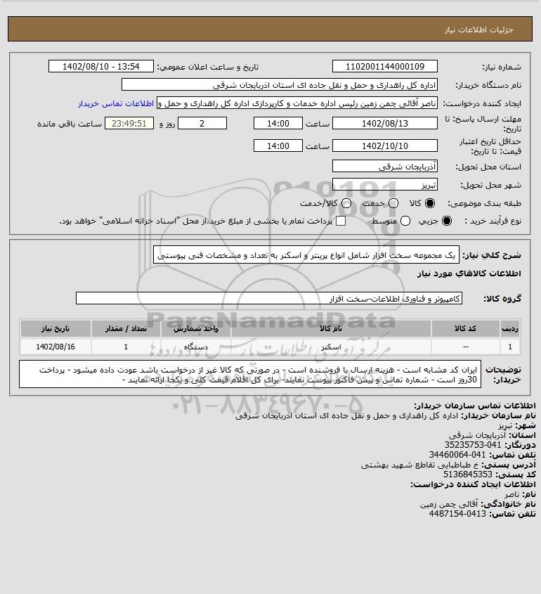 شرح کلی نیاز: یک مجموعه سخت افزار شامل انواع پرینتر و اسکنر به تعداد و مشخصات فنی پیوستی