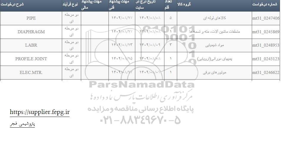 MT31-0247406 کالاهای لوله ای 5 1402.8.17 دو مرحله ای  PIPE