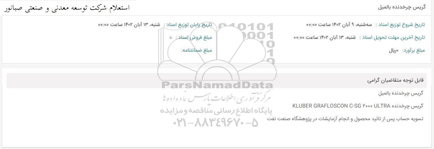 استعلام شرکت توسعه معدنی و صنعتی صبانور