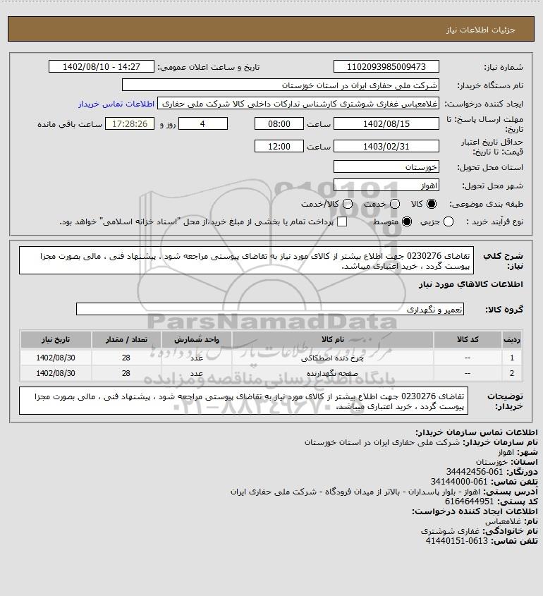 نام دستگاه خریدار:شرکت ملی حفاری ایران در استان خوزستان