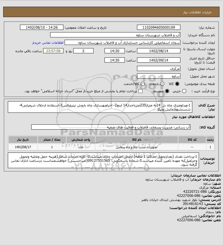 نام سازمان خریدار: آب و فاضلاب شهرستان ساوه