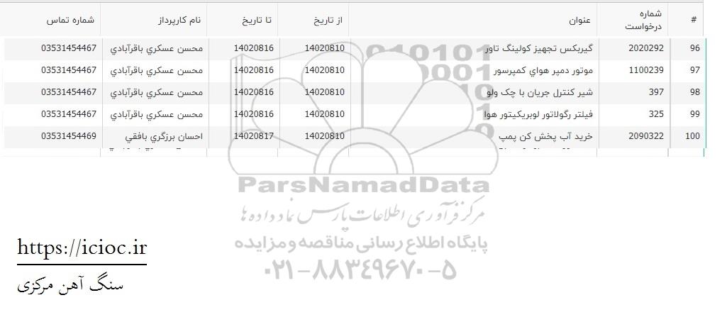 شماره درخواست عنوان  از تاریخ  تا تاریخ   نام کارپرداز   شماره تماس