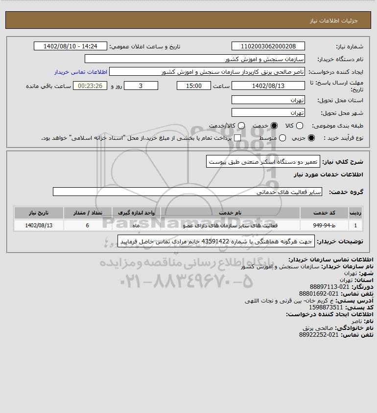 شرح کلی نیاز: تعمیر دو دستگاه اسکنر صنعتی طبق پیوست