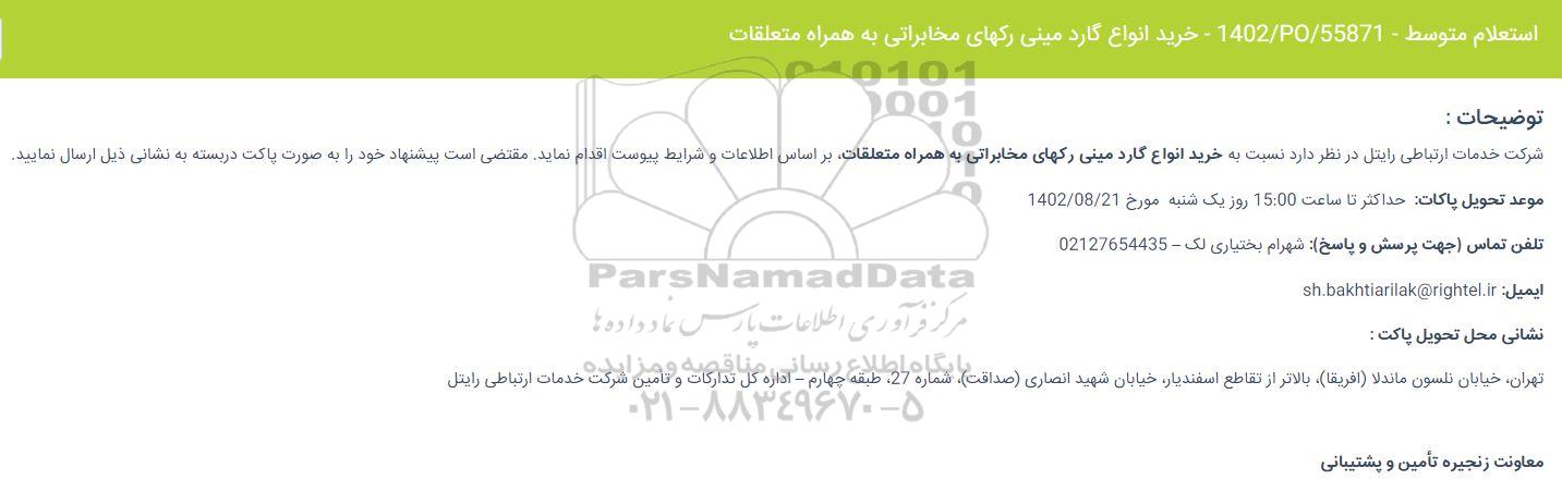 استعلام متوسط - 1402/PO/55871 - خرید انواع گارد مینی رکهای مخابراتی به همراه متعلقات