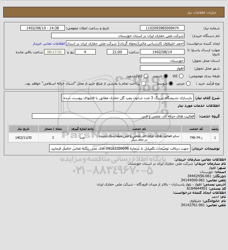 نام دستگاه خریدار:شرکت ملی حفاری ایران در استان خوزستان