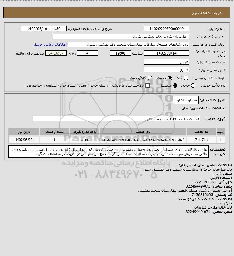 نام دستگاه خریدار:بیمارستان شهید دکتر بهشتی شیراز