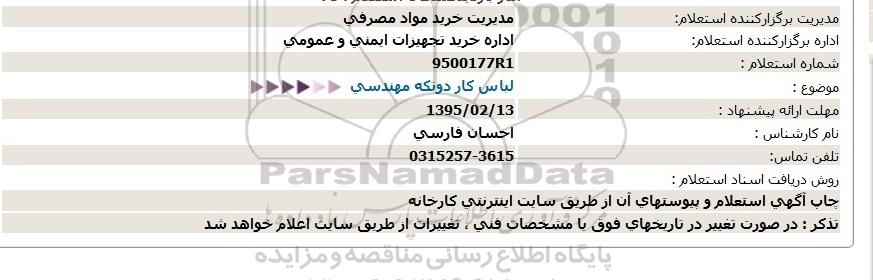 اداره برگزارکننده استعلام: اداره خریدمواد شیمیایی و روانکارها