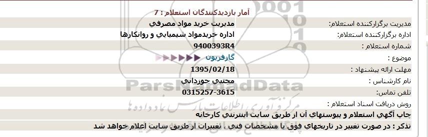 اداره برگزارکننده استعلام:     اداره خریدمواد شیمیایی و روانکارها