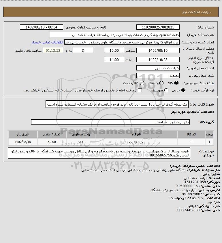 شرح کلی نیاز: پک نمونه گیری تیرویید 100 بسته 50 تایی برند فروغ سلامت