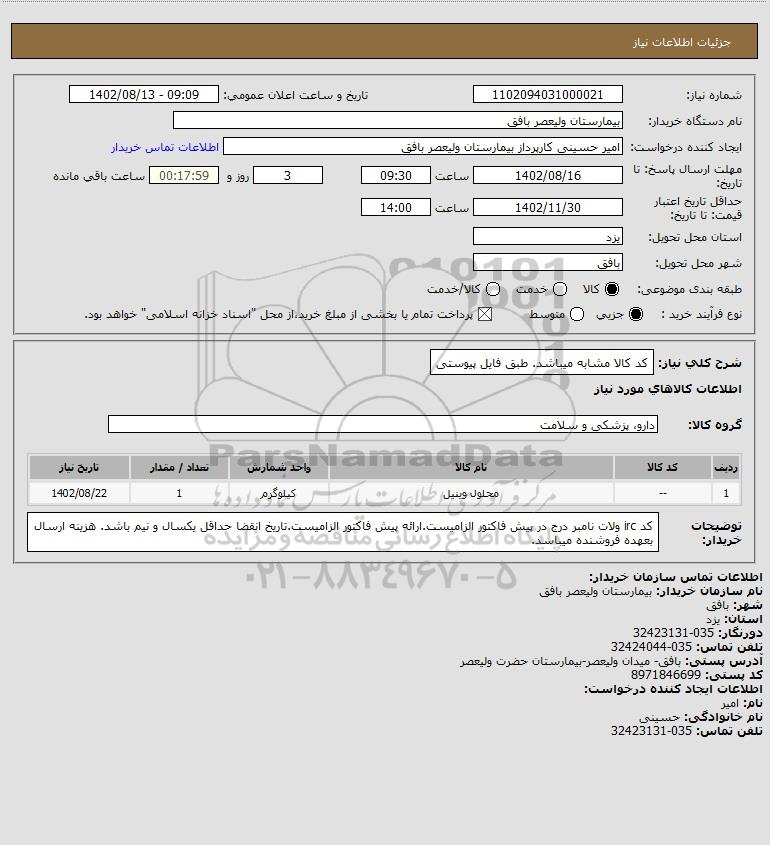 شرح کلی نیاز: کد کالا مشابه میباشد.