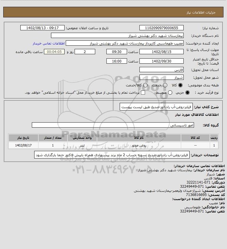 نام دستگاه خریدار:بیمارستان شهید دکتر بهشتی شیراز