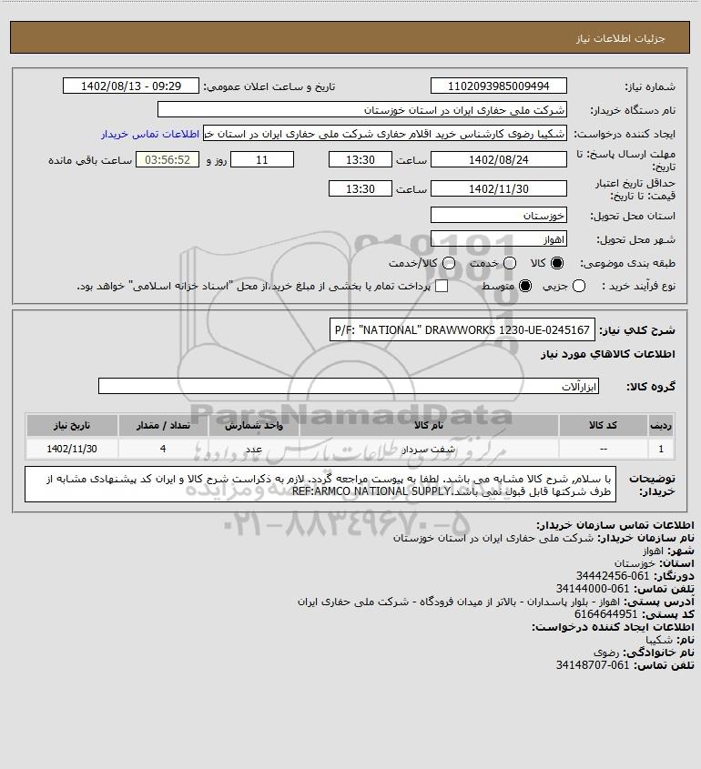نام سازمان خریدار: شرکت ملی حفاری ایران در استان خوزستان