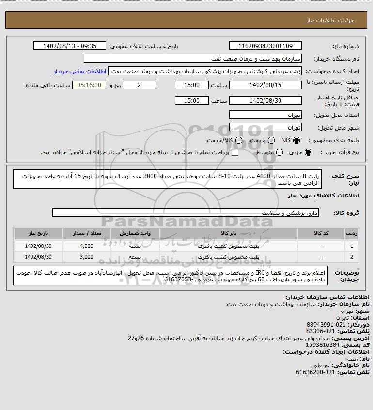 نام دستگاه خریدار:سازمان بهداشت و درمان صنعت نفت